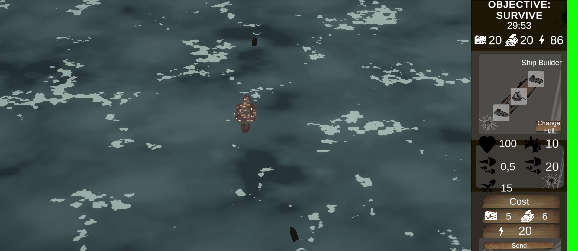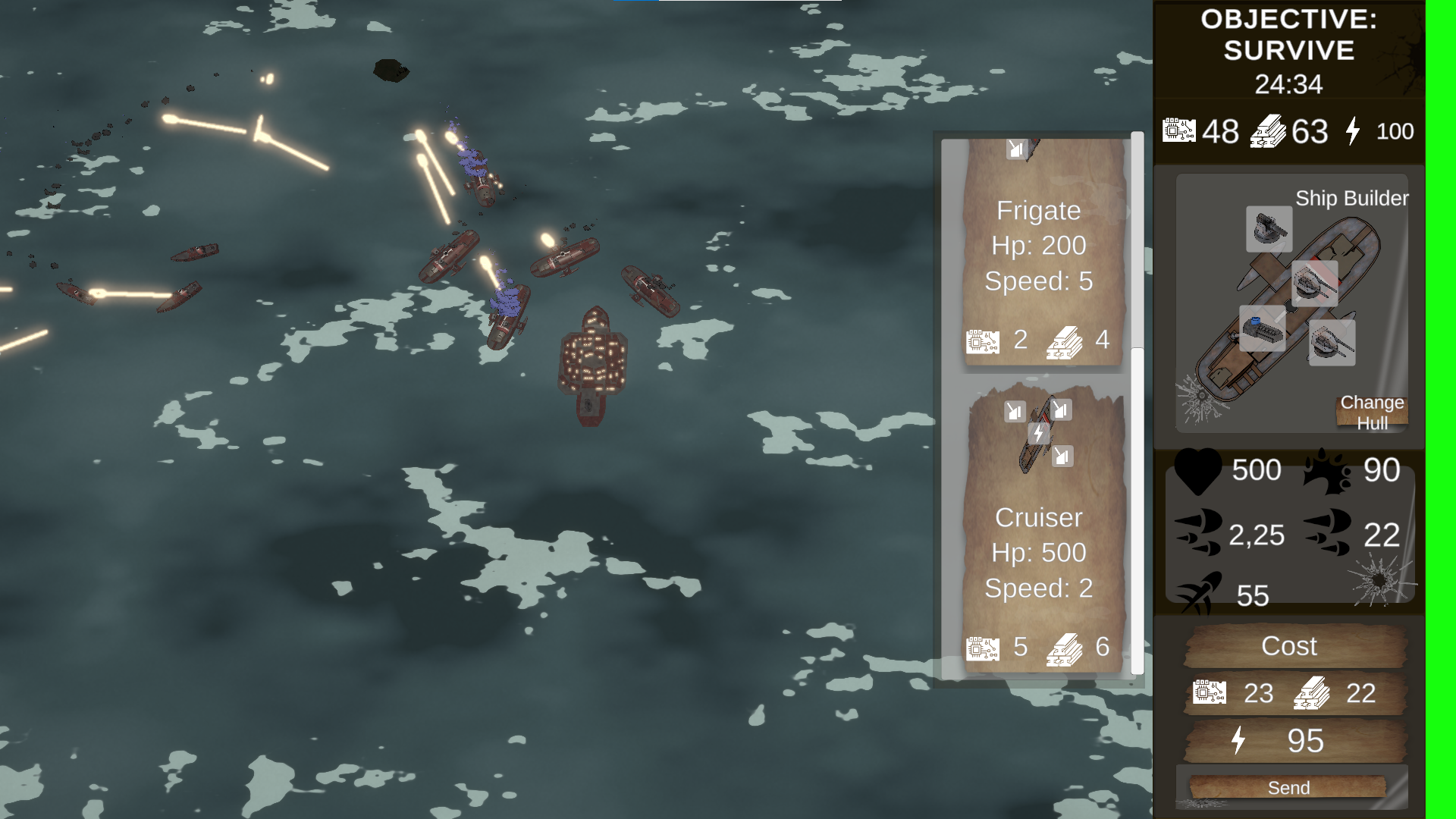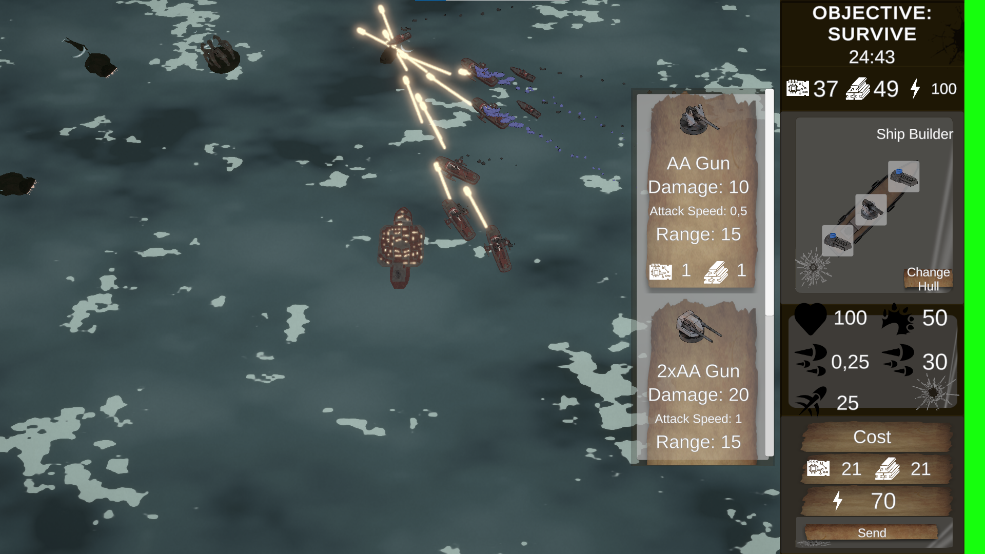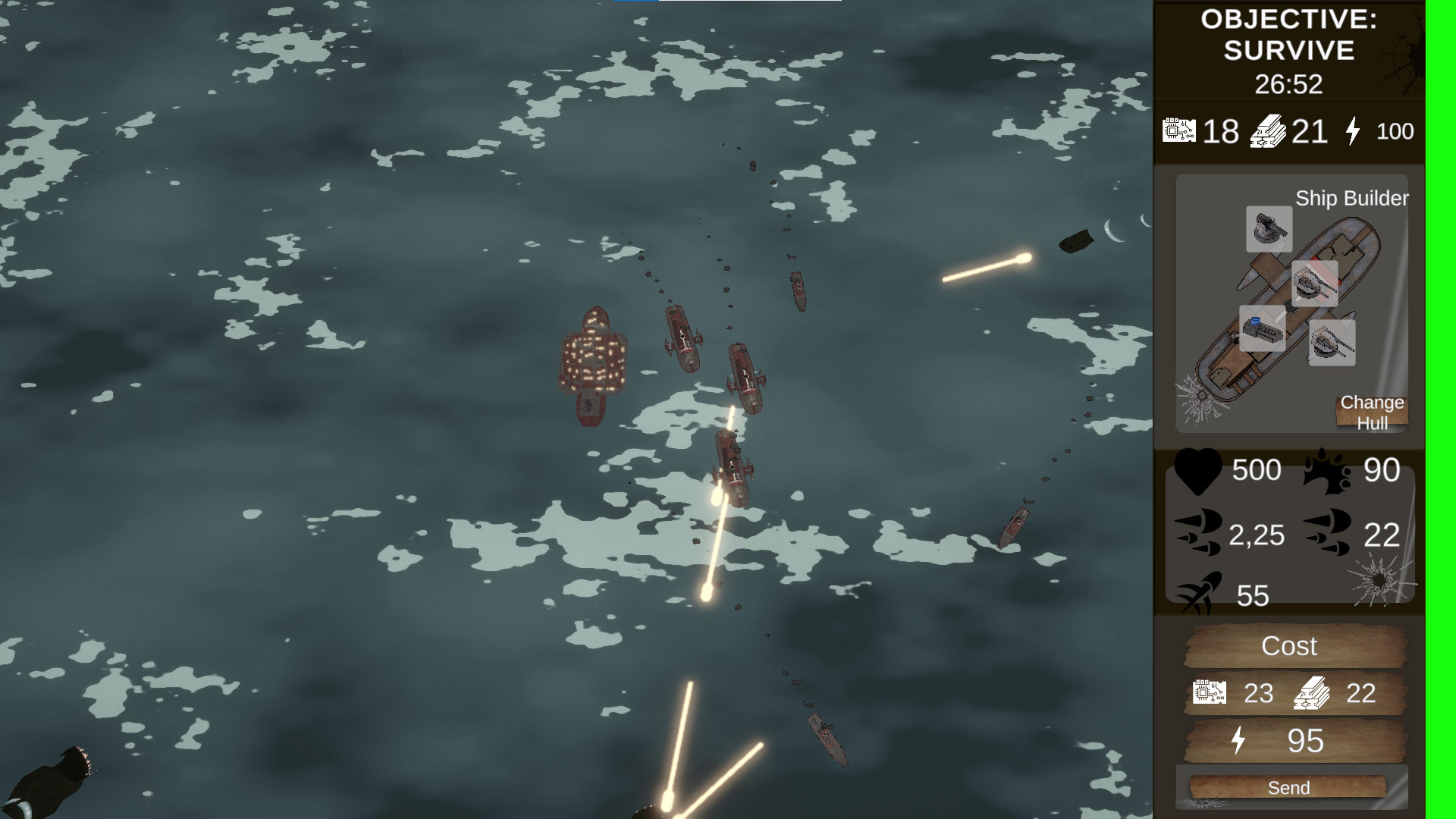 In this game you create your own ships. Choose hull, equip different weapons and engine and send your vehicle to battle. It will automaticaly fight with approaching sea monsters, which seek to destroy your home. By defeating them you will earn resources required to build more advanced ships.